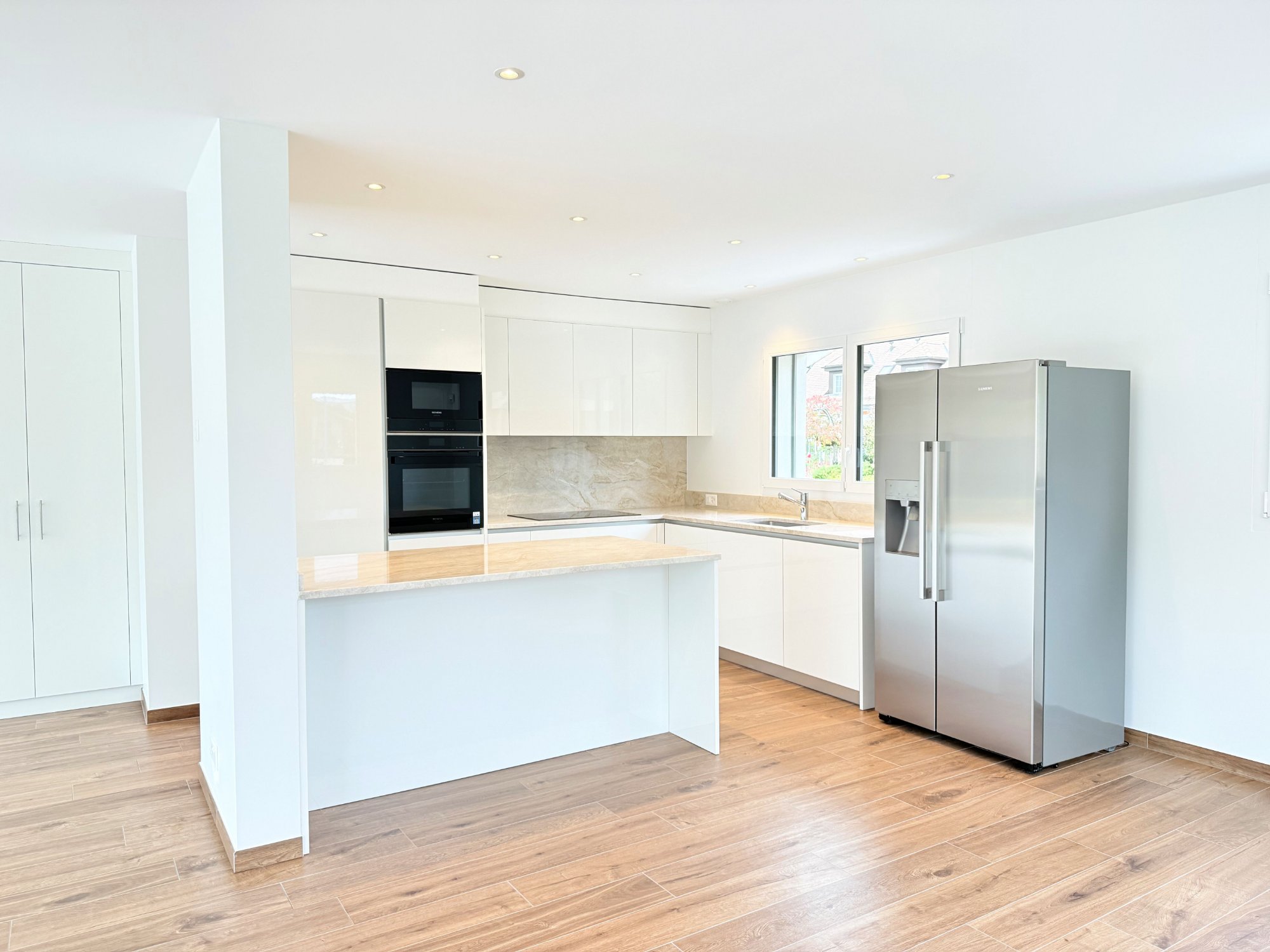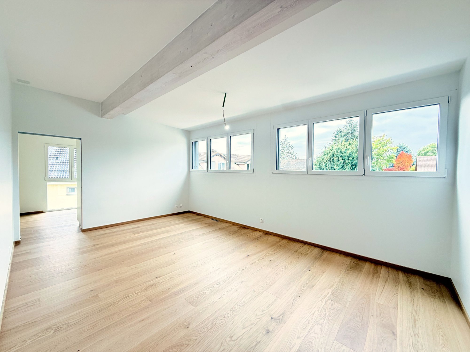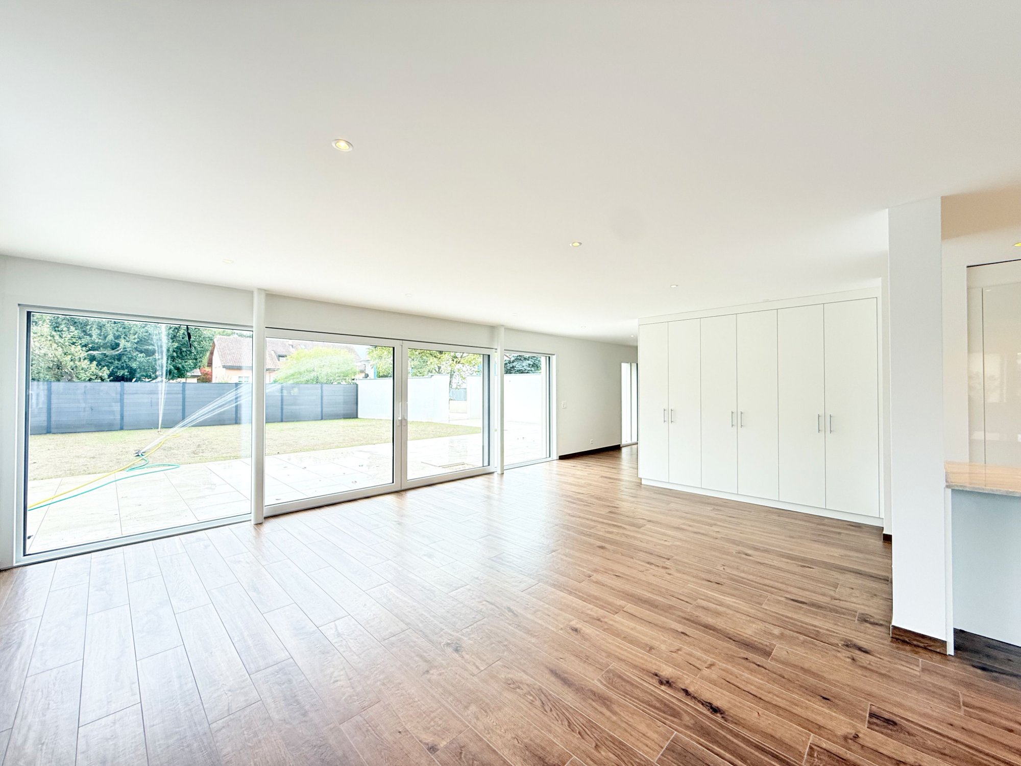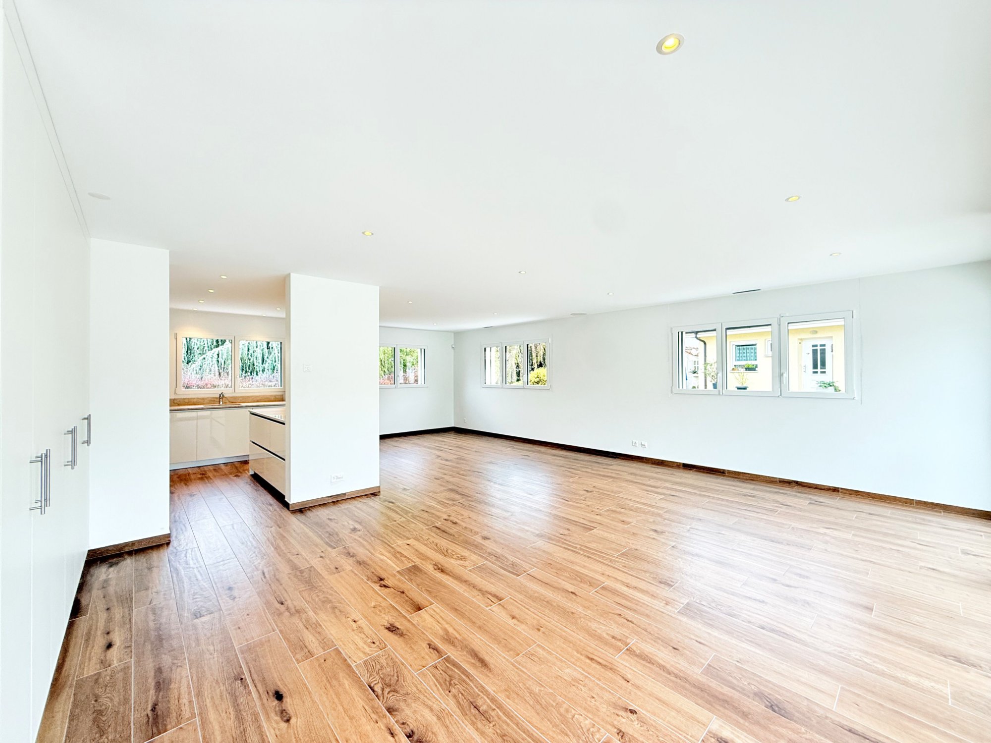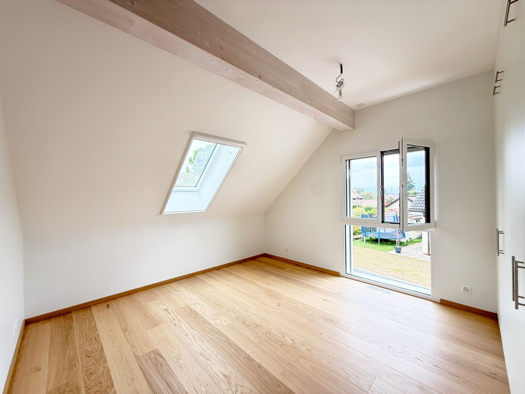 Maison jumelée d'exception à Gland, au chemin du Buis. Architecture contemporaine, volumes généreux et finitions soignées. Terrasse, jardin privatif et vue dégagée.